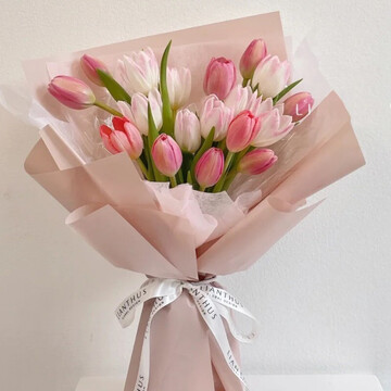 19朵粉色郁金香。