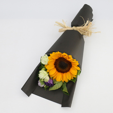 黑牛皮纸扇形包装,拉菲草束扎花语:友情是一种记忆,永远刻骨不忘;祝福是一丝新意,一直铭记在心底。让清风捎去美丽,将幸福藏在你的心里,愿你在夏日的每天,都幸福快乐!附送: