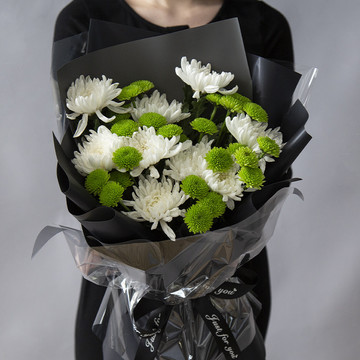 9枝白菊搭配绿色小菊