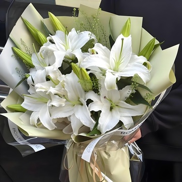 网格皱纹纸内衬,橘色皱纹纸扇面包装。粉色蝴蝶结装饰花语:给爱一张不老的容颜,让相爱过都终身不变;给爱一个不悔的誓言,让相爱过都彼此思念;给爱一片辽阔的蓝天,让那真爱充满人间。附送: