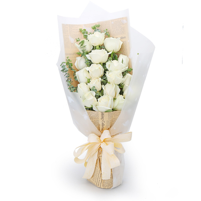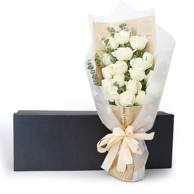 19朵白玫瑰搭配尤加利叶