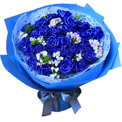 白色纸内衬,蓝色硬纸外围圆形包装。花语:弱水三千,只取一瓢;花开满园,只取一朵,红颜无数,只恋你一个。附送:
