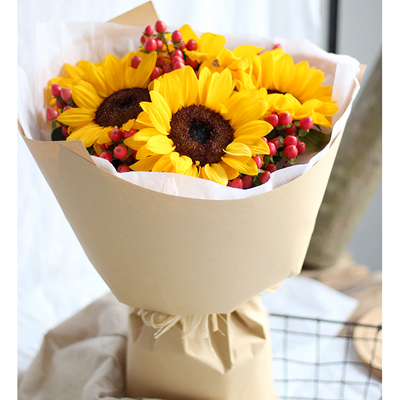 白纸内衬素色牛皮纸外围精美包装,配拉菲草系结束扎。花语:岁月的车轮碾过了日日夜夜,春秋冬夏;流年的轮回送走了晨起暮霞,似水年华;附送: