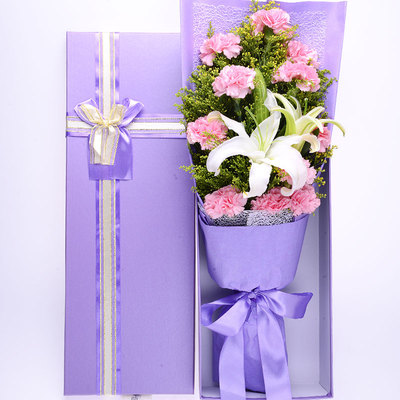 11朵粉色康乃馨、1枝百合花