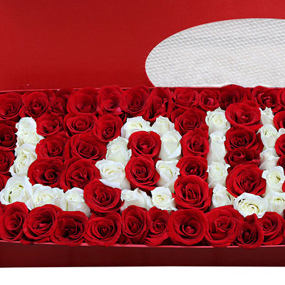 精选红玫瑰、白玫瑰99朵,白玫瑰LOVE造型