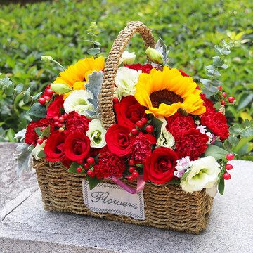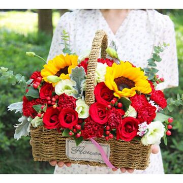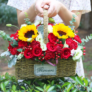 手提花篮花语:希望是什么,希望就是你抱着鲜花,迎着朝阳而来!附送: