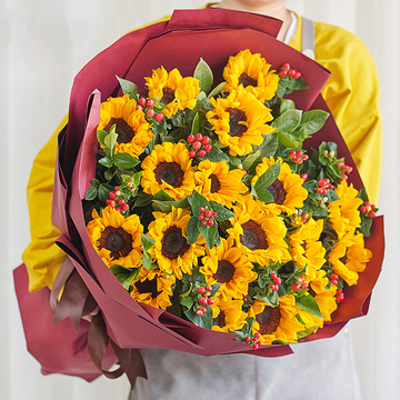 19朵向日葵,红豆丰满,栀子叶间插