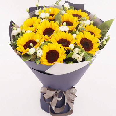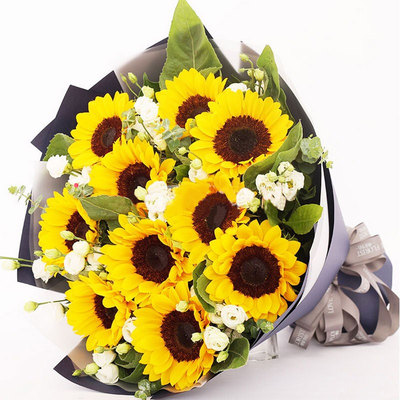 精选10支向日葵,洋桔梗、绿叶点缀搭配