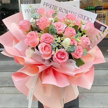 粉色欧雅纸扇形层次包装花语:好想朝朝暮暮,更想天长地久。思念悠悠,爱意浓你。附送: