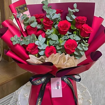 11朵红玫瑰,尤加利间插