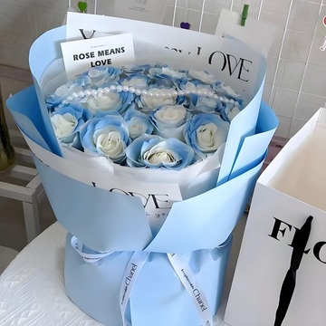 蓝色韩式包装花语:沿路的风景再美,也比不上在你的身边附送: