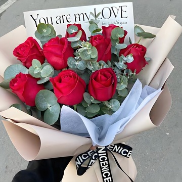 11朵红玫瑰,尤加利间插