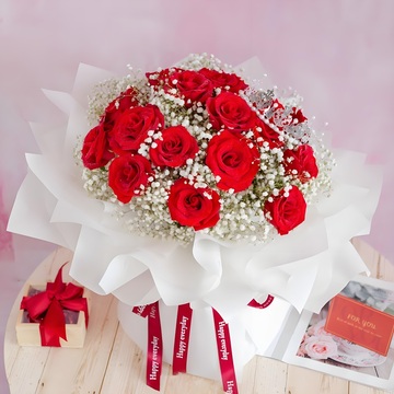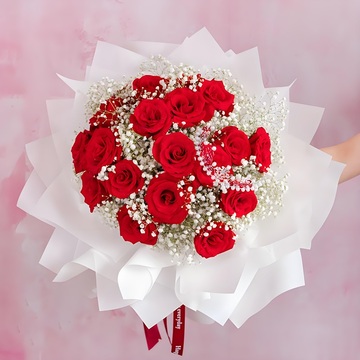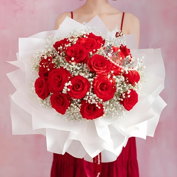 19朵红玫瑰,白色满天星丰满,一个皇冠(款式随机)