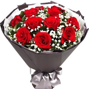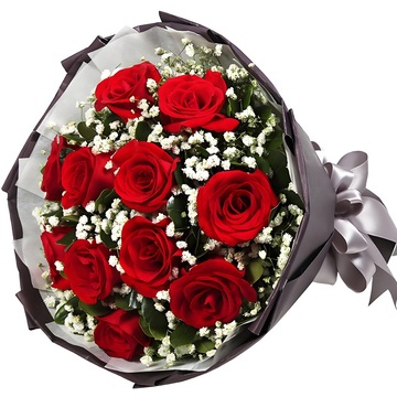 11朵红玫瑰,满天星、栀子叶丰满搭配