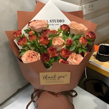 咖色欧雅纸扇形包装花语:你在我眼里永远是亲爱的公主附送: