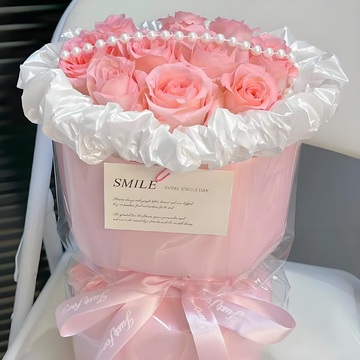 粉色小香风包装花语:我会做一些浪漫的事,比如送一些好看的花给好看的你附送: