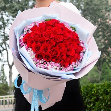 33朵红玫瑰,粉色相思梅丰满围边
