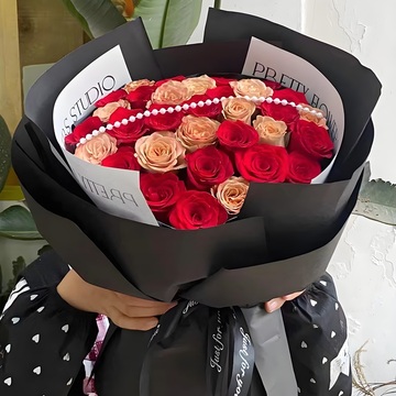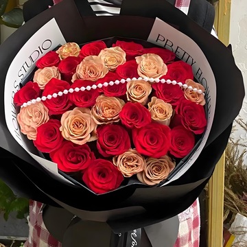 13朵卡布奇诺,20朵红玫瑰,珍珠搭配