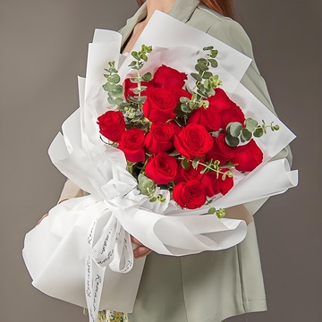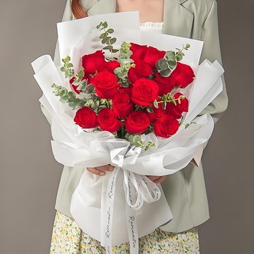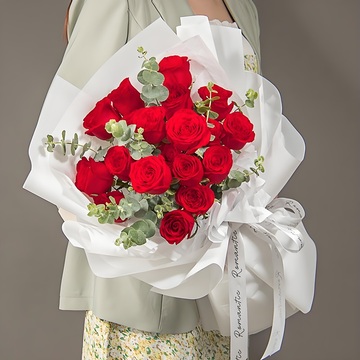 19枝红玫瑰,尤加利间插;