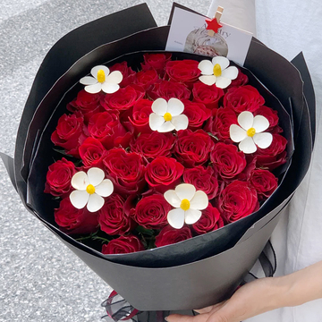 黑色包装花语:等你是一种考验,念你是一种习惯,疼你是一种珍惜,爱你是一种幸福,吻你是一种温柔,想你是一种快乐,看你是一种享受,抱你是一种浪漫!附送: