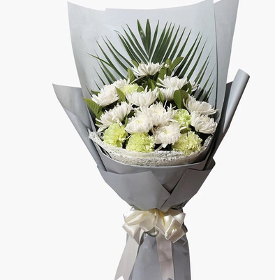 高级灰包装纸白色缎带束腰包装花语:祭祀清明花束附送: