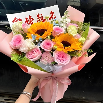 如图包扎花语:十年寒窗终不负,金榜题名耀前程!愿你执笔为剑开新篇,前程似锦踏青云附送: