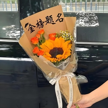如图包扎花语:十年寒窗终不负,金榜题名耀门楣;蟾宫折桂青云上,鹏程万里展宏图!附送: