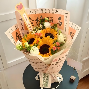 如图包扎花语:提笔如剑生花妙,揭榜之日姓字高。十年砺得梅花骨,一日看尽长安道。附送: