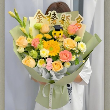 如图包扎花语:金榜题名时,一鸣惊人世!愿君笔锋所至皆锦绣,前程似锦展宏图附送: