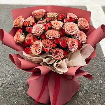 19支卡布奇诺玫瑰,5支巧克力泡泡