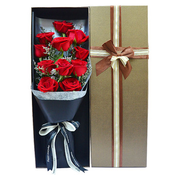 白色落水纸和黑色牛皮纸扇形包装,长方形礼盒装(颜色随机)花语:爱你的感觉,永远都是那么美;你那温柔的笑脸;是我致命的弱点;附送: