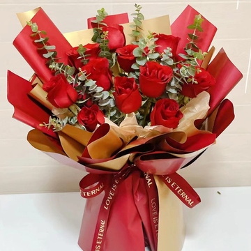 红玫瑰11枝,尤加利搭配