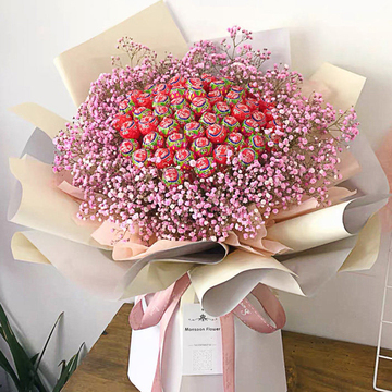 粉色双面欧雅纸包装,粉色缎带花语:听见你的名字,嘴角会泛起甜蜜附送: