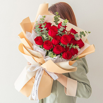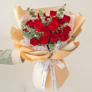 淡黄色欧雅纸层次扇形包装,白色缎带束扎花语:完美的一天,只需要扬起你的嘴角,带着我的爱,大步向前走。附送: