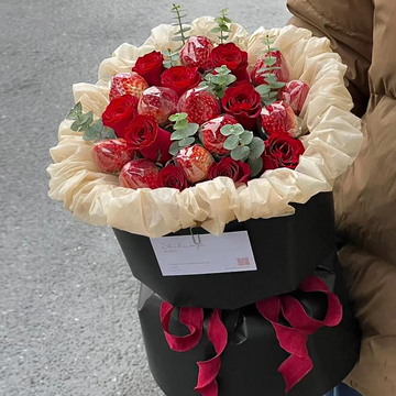 9朵红玫瑰,11颗草莓,尤加利间插