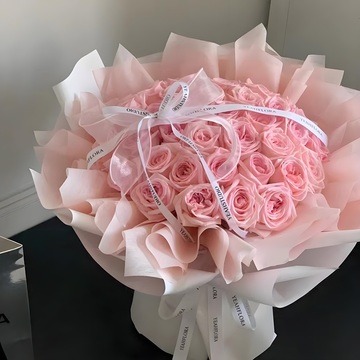 粉色层次韩式包装花语:爱很难投入,但一旦投入,便更难走出。爱是一盏永不昏暗的明灯。愿你的爱乘着飞翔的白鸽,展翅高飞。人活着总要爱一回。生命如花,爱情是蜜。附送: