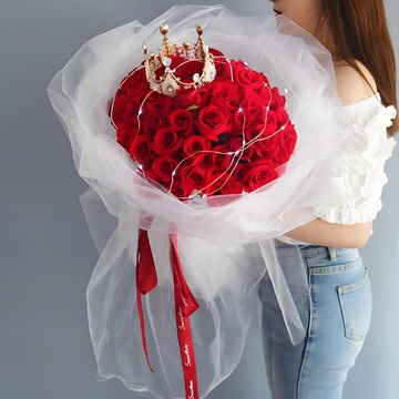 33朵精品红玫瑰,可发光灯带+精美皇冠装饰