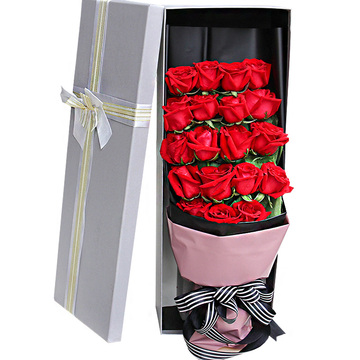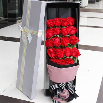 黑色牛皮和粉色欧雅纸扇形包装,条纹缎带束扎。方形礼盒装(颜色随机)花语:人生无限好,有你更美好附送:
