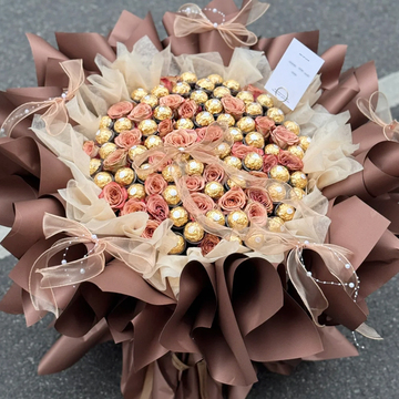33朵卡布奇诺,60颗费列罗巧克力,蝴蝶结装饰