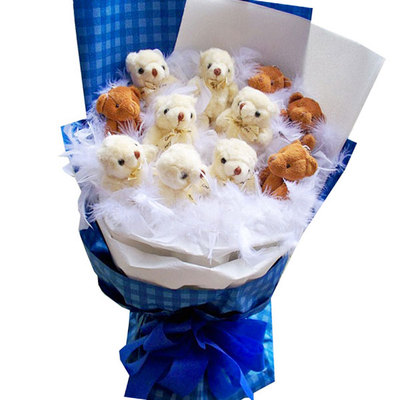 白色精品纸内衬,蓝色格子精品扇形包装,蓝色蝴蝶结束扎。花语:人生一世,总有个追求,有个盼望,有个让自己珍视,自己向往,让自己护卫,愿意为之生活一遭,乃至为之献身的东西,这就值了。附送: