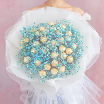 33颗费列罗巧克力,蓝色满天星丰满搭配