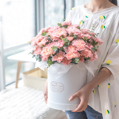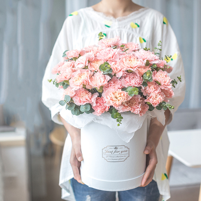 33朵粉色康乃馨,尤加利搭配。
