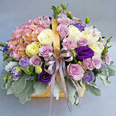 精美花篮包装花语:所要的爱情所要的幸福,只是一天天平淡日子里的执手相看;只是一天天时光流逝中的快乐相随;只是一天天简单地问候;只是相处时温暖的关怀;只是有那么一天,我们走进婚姻时的美丽瞬间。附送: