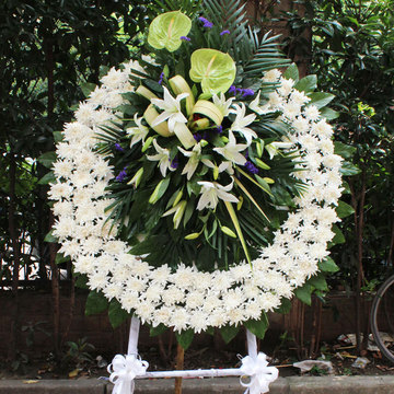 内衬白色包装纸,外层黑色硬包装纸扇形包装,白色网纱束腰。花语:清明里总有一些花开,这些意象世界里清醇而多愁的花儿,一睁开眼睛和关闭视野都要流泪;也许这雨正是我无尽的伤悲的一场宣泄,宣泄后,一切都好。附送: