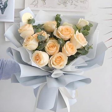 白色雪梨纸内衬灰蓝色欧雅纸包装花语:独特的你,值得我永生珍惜附送: