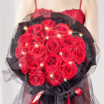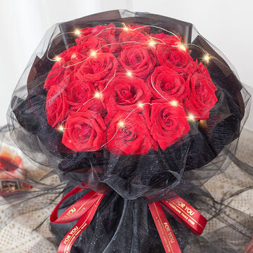 黑色雾面纸包装,黑纱盖头花语:如果让我选择是被爱还是付出爱,我会毫不犹豫的选择付出爱。因为,爱你,才是我真正的幸福。附送: