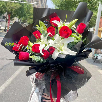 内衬白色雪梨纸,外层黑色韩素纸包装花语:只有跟你在一起的时候我才是活着的,我一个人的时候,就连最耀眼的太阳也失去光彩!附送: