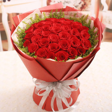 粉红色平面纸+白色雾面纸包装,精美白色缎带蝴蝶结束扎。花语:一句寒暖,一线相喧;一句叮咛,一笺相传;一份相思,一心相盼;一份爱意,一生相恋。附送:
