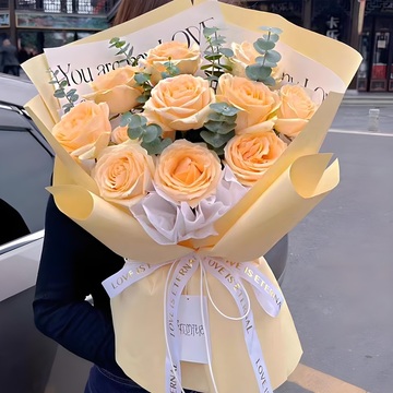 淡黄色韩素纸包装花语:看花的娇艳,思念着你的容颜,望流云飘逸,惦记着你的佳期。轻轻地屏住呼吸,距离太远还是无法感受到你,可祝福与你形影不离,愿生日快乐笑容美丽!附送: