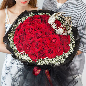黑色雪梨纸搭配黑色韩素纸、黑网纱花语:你就是我的世界里最美最耀眼的星星。附送: